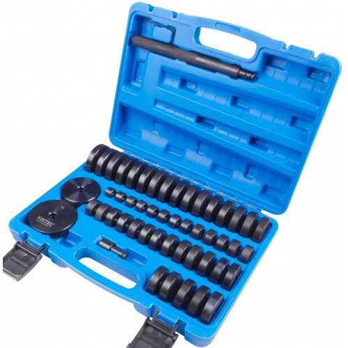 VIKTEC VT01509 набір оправок для встановлення та зняття втулок, підшипників, сальників та ін Універсальність набору в тому, що він комплектується шайбами з кроком 1мм. Таким чином він допоможе зняти або встановити будь-який агреат від 18 до 65мм в діаметрі.