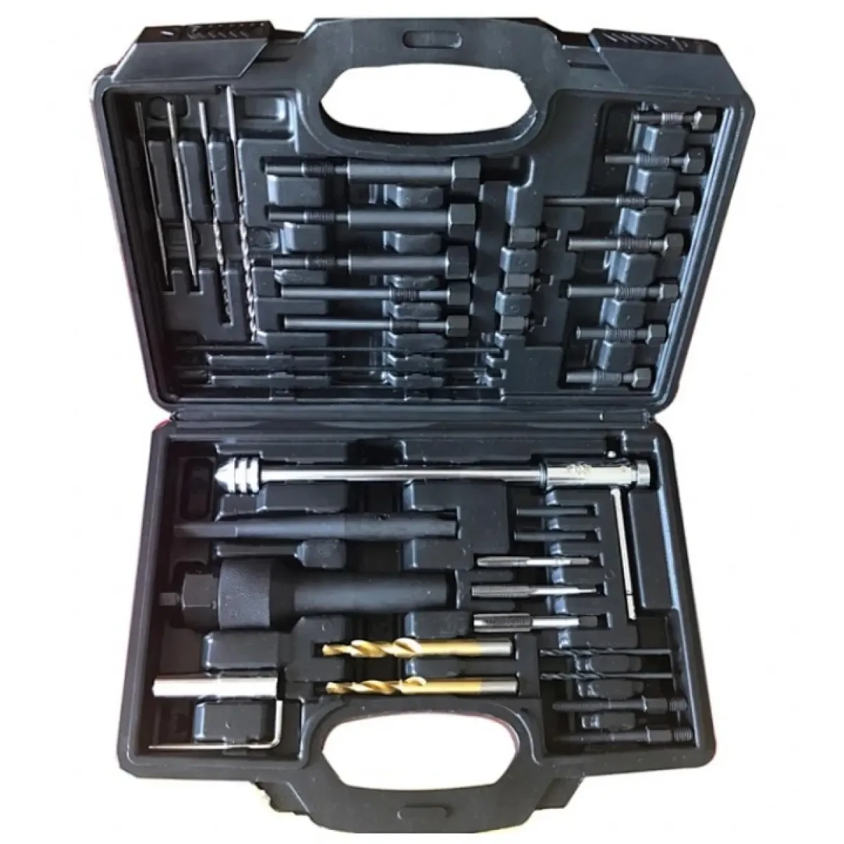Набір професійного інструменту для вилучення свічок розжарювання і відновлення різі в їхніх колодязях, а також для висвердлювання шпильок, болтів, свічок запалювання.